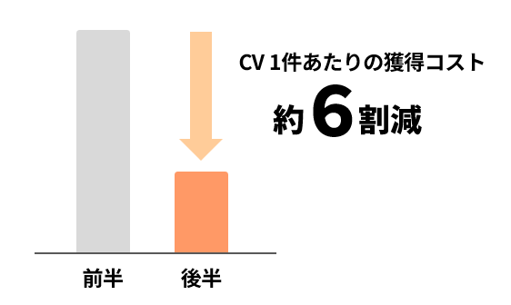ショップBで配信期間の前後半での比較を行ったところ、CPAが前半から後半にかけて約6割改善されました。