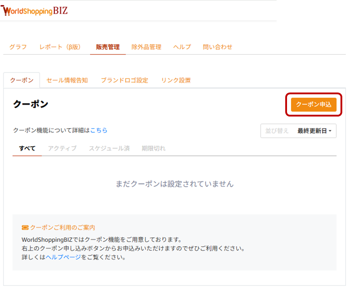 画面右側にある【クーポン申込】のボタンからクーポンの設定が可能です。