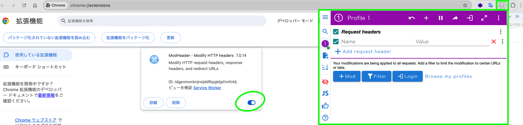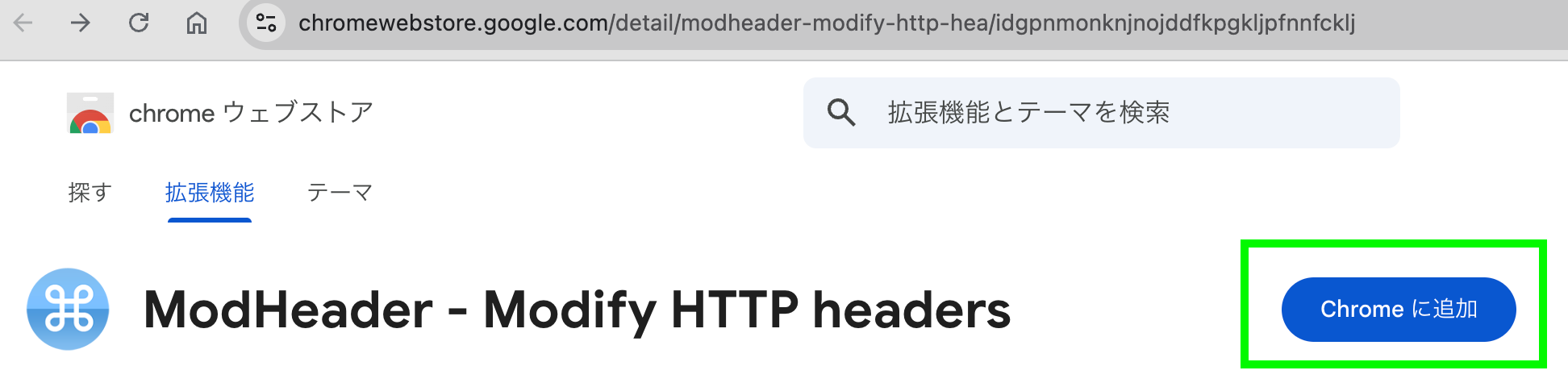 本ガイドでは例として 「ModHeader」 を使用しますが、同様の機能を持つ拡張機能であれば問題ありません。