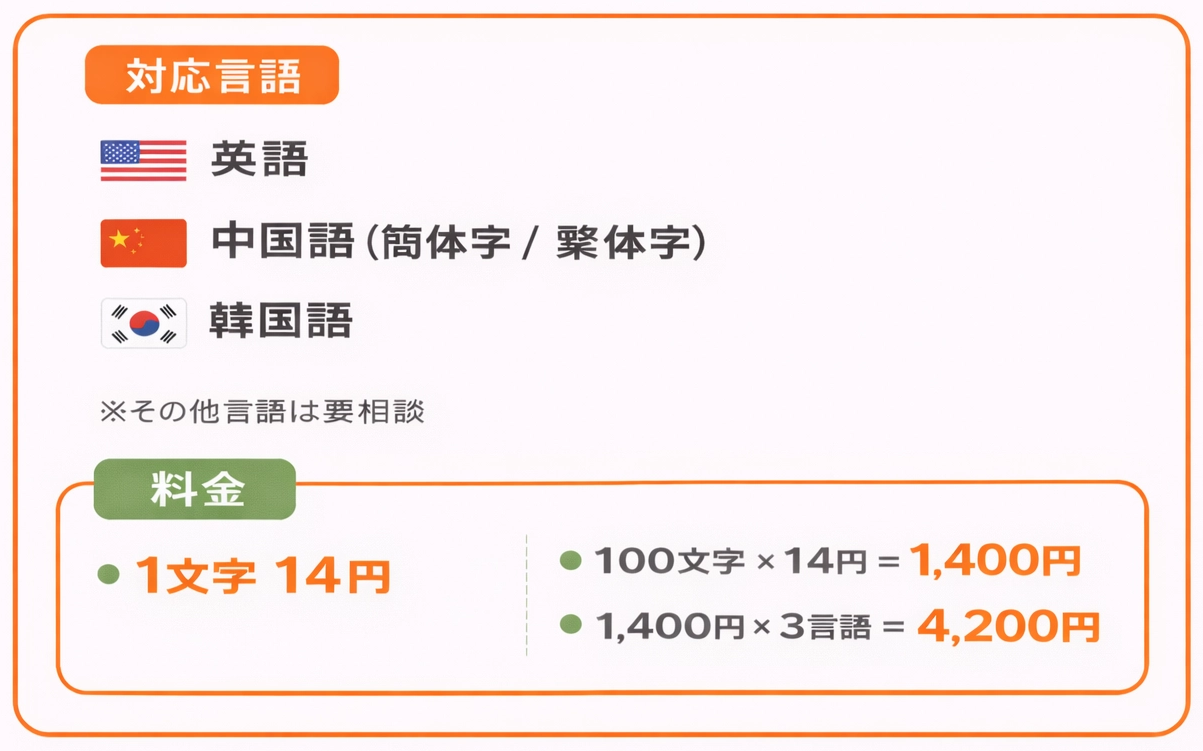 対応言語・料金については下記となります。
